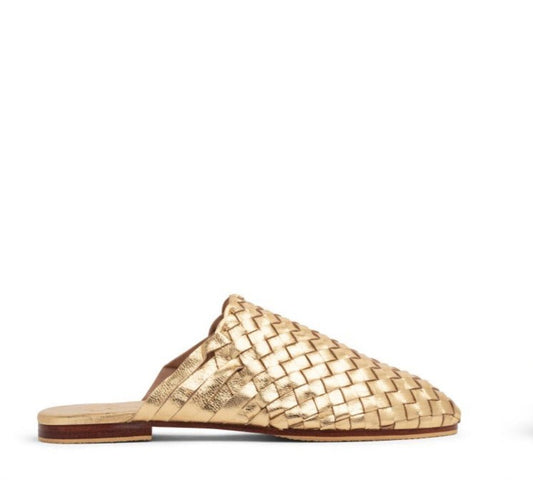 Gold Handwoven Lambskin Slippers